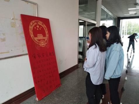 6月1日,学校稳定安全办公室迅速印发《加强国家安全教育活动实施意见》,在全校范围内掀起活动热潮。意见要求学校工会发起“深刻学习领会党的十九大关于总体国家安全观重要论述”的倡议,提升全校师生自觉维护国家安全的使命感、紧迫感;学校保卫处组织国家安全报告会,报告会要突出“开拓新时代国家安全工作新局面”这个主题;学工部及各二级学校组织召开以国家安全为主题的班会活动,组织学生观看国家安全宣传片,提升学生防间反谍意识;团委举办国家安全教育专题签名活动,向全校师生宣传国家安全知识,将相关法规内化为自身要求,形成自觉行动;各二级学校制作以国家安全教育为主题的宣传展板。各二级学校结合专业领域特点,绘制有关政治安全、国土安全、军事安全、经济安全、文化安全、信息安全以及资源安全等为内容的专题展板;组织宣传部、团委充分利用横幅、LED电子屏、宣传橱窗、校园广播、《太阳石》报及微信公众号等宣传平台开展立体式、全方位、多角度的宣传教育活动。