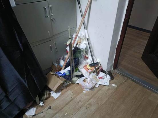 3.学生公寓宿舍内普遍存在吸烟现象,并随地乱扔烟头和垃圾,存在严重的安全隐患,包括火灾风险、健康问题和环境污染等,已现场批评指正违规学生。