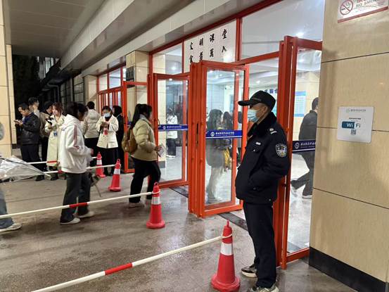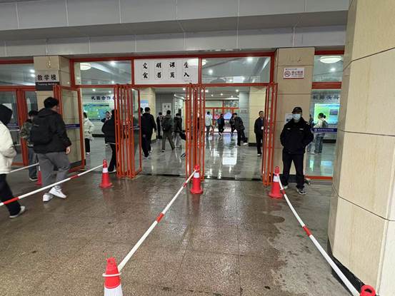 秩序管控,安全护航。早6:00全体安保人员准时上岗,为参考学生及家属提供细致周到的安全服务。安保人员积极配合交警做好门前交通秩序疏导,引导随行家长车辆即停即走,确保交通井然有序。做好考试区域排队通道秩序维护工作,防止人员聚集拥堵。管控引导校内车辆,开展治安巡逻及隐患排查,及时妥善各类突发事件,营造良好的校园秩序。