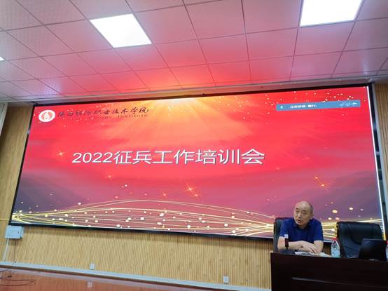 征兵工作站副站长周文昱围绕高校征兵工作的组织与实施、征兵宣传、体检政考、学费补偿、退役优待、廉洁征兵等方面内容进行了讲授,使参训人员进一步明确了我校大学生征兵工作任务,熟悉了高校征兵工作政策规定,掌握了开展大学生征兵工作的程序,为我校开展2022年下半年征兵工作奠定了坚实基础。