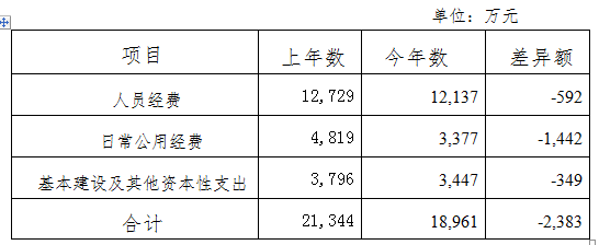 2016年度实际总支出18,961万元,比上年减少2,383万元,降低了11.16%。各支出项目分析如下表:
