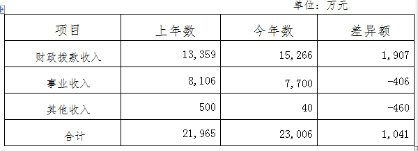 2016年度实际总收入23,006万元,比上年增加1,041万元,比上年增加了4.52%,各收入项目分析如下表:
