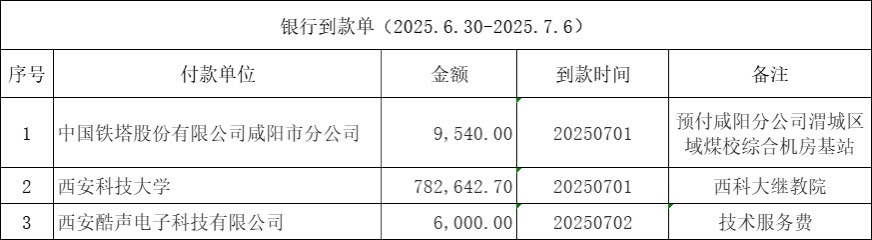 银行到款单(2025.6.30-2025.7.6)