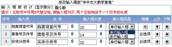 这是由于自定义输入模板的时候由于字段类型的不匹配产生相关问题。在数据库中,案卷号及件号,归档份数这2个字段对应的数据类型为数值型,其余所有字段皆为字符型。因此自定义模板的时候这2项只能输入数字。制作输入模板的时候需要注意类型匹配。
