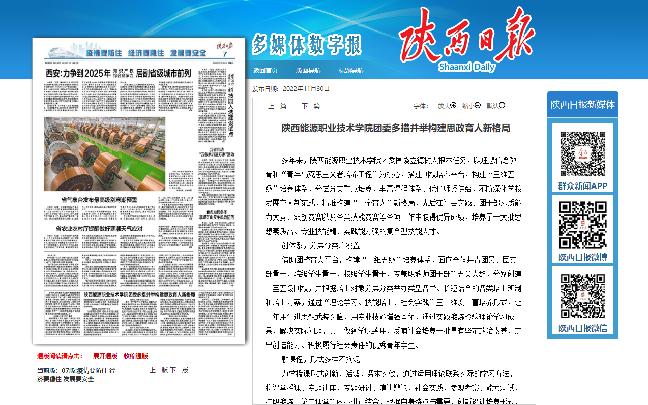 多年来,陕西能源职业技术学院团委围绕立德树人根本任务,以理想信念教育和“青年马克思主义者培养工程”为核心,搭建团校培养平台,构建“三维五级”培养体系,分层分类重点培养,丰富课程体系、优化师资供给,不断深化学校发展育人新范式,精准构建“三全育人”新格局,先后在社会实践、团干部素质能力大赛、双创竞赛以及各类技能竞赛等各项工作中取得优异成绩,培养了一大批思想素质高、专业技能精、实践能力强的复合型技能人才。