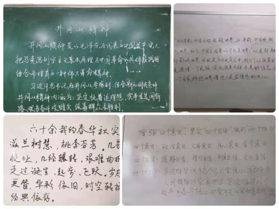 为热烈庆祝中国共产党成立100周年,深入学习贯彻习近平新时代中国特色社会主义思想,切实引导广大师生坚定理想信念,厚植爱国情怀。5月19日-5月24日,建测学院围绕学习“四史”“校史”主题,将传承“长征精神”与“走好新时代的长征路”相贯通,在全体教职工中开展“献礼建党100周年”暨“学习‘四史’‘校史’铭初心,筑梦青春迎百年”教师板书大赛活动。