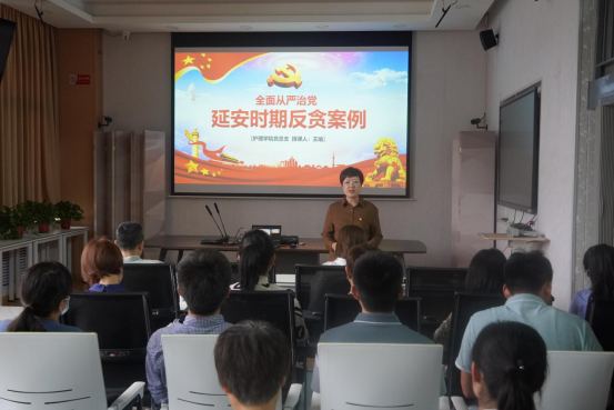 党课主题为《全面从严治党——延安时期反贪案例》,王瑜书记以延安时期著名战斗英雄肖玉璧案例为切入点,引出本次党课内容。王书记分别从“英雄自古出磨难”、“不满分配七品芝麻官”、“敌人送的糖衣炮弹”三个阶段循序渐进讲述了肖玉璧是如何一步一步走向犯罪的深渊,最终导致“东窗事发”,以及“毛主席的铁面无私”,遵照党的章程规定给予人民群众一个满意的答复的历史案例。同时指出肖玉璧案件是毛主席在反腐道路上的一个重要胜利,为革命队伍的发展壮大已及日后我党取得全面性胜利奠定了良好的基础。