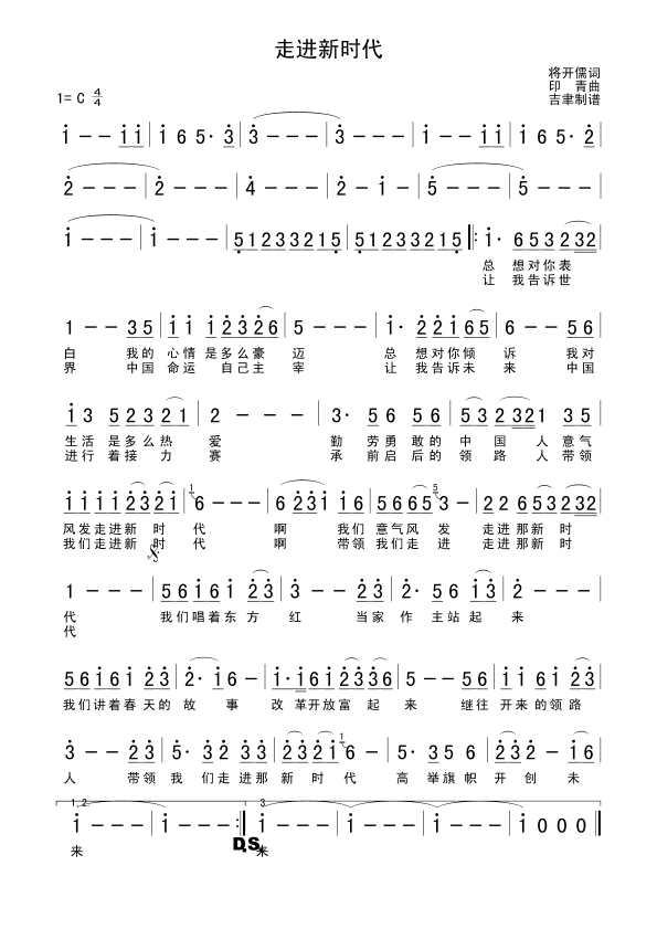 歌曲创作背景:《走进新时代》是张也演唱的歌曲,由蒋开儒作词,印青作曲,歌曲发行于1997年4月1日,收录于专辑《走进新时代》。1996年,词作者蒋开儒受深圳罗湖区邀请写香港回归组歌。1997年,邓小平逝世后,蒋开儒看到江泽民同志报告说要“高举邓小平理论伟大旗帜,进一步深化改革开放”,这句话不仅给了蒋开儒灵感,也让他觉得改革开放会继续下去,于是,蒋开儒在日记里写下“我们唱着东方红当家做主站起来,我们讲着春天的故事改革开放富起来,继往开来的领路人带领我们走进新时代,高举旗帜开创未来”,这三句话后来都变成了歌词。《走进新时代》旋律动人正气、歌词真挚朴实,充满爱国主义精神,歌颂了中国人民勤劳勇敢和无限智慧,表达对国家领导人和中国共产党的爱戴和尊敬之情。