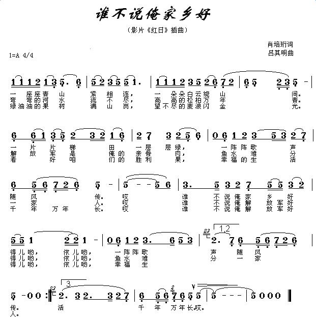 歌曲创作背景:《谁不说俺家乡好》是拍摄于1961年的电影《红日》中的插曲。影片取材于1947年的“孟良崮之战”,这场闻名中外的惨烈战役对交战双方有着存亡续绝的意义。1947年5月13日到16日三天的时间里,72万军人在孟良崮决一死战。多年后在孟良崮树起了一座永久性纪念物--孟良崮战役纪念碑,以铭记在战役中为了解放战争胜利不惜牺牲的人们。
