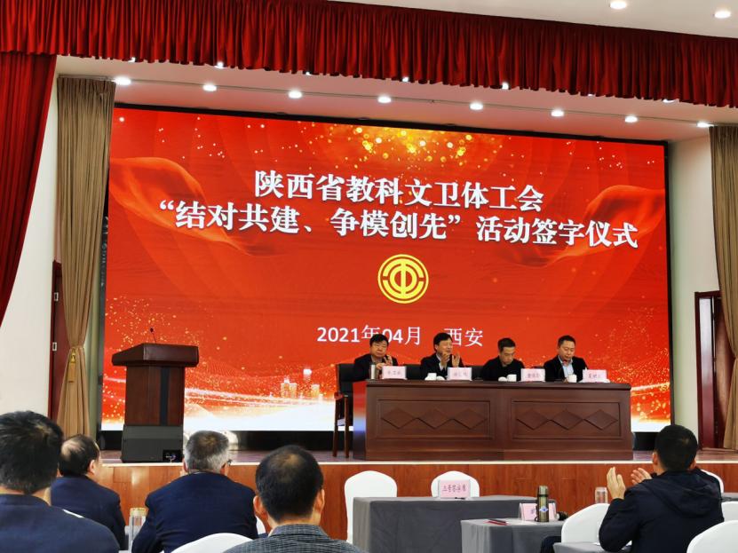 按照会议议程,省教科文卫体工会举行“结对共建、争模创先”活动签字仪式。会前我校工会主动与曾荣获模范职工小家荣誉称号的陕西工业职业技术学院工会协商,达成共建协议。会上,杨笑琪同志代表校工会与陕工院工会主席张彬签订结对共建协议。