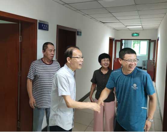 每到一处,李耀辉都和大家亲切交谈,询问各单位暑期工作进展情况及工作中的困难和要求,代表学校向酷暑高温下仍然奋战在工作一线的干部职工表示亲切慰问,并对大家为学校发展付出的辛勤劳动表示衷心感谢。叮嘱各部门负责人要关心教职工的身体健康,时刻牢记“安全第一”,嘱咐干部职工个人要增强自我保护意识,劳逸结合,合理安排作息时间,切实做好防暑降温工作。