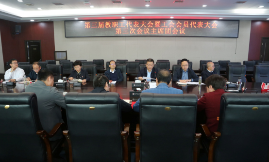 大会开幕前,4月9日上午,在办公楼第三会议室召开了三届二次大会主席团会议。主席团审议通过了大会议程、大会筹备工作报告、大会主席团及秘书长建议名单;审议通过了《学校2023年工作报告》决议(草案)、《工会2023年工作报告》决议(草案)、《学校2023年财务工作报告》决议(草案);审议了三届三次双代会提案征集情况报告,确定提案立案4项。
