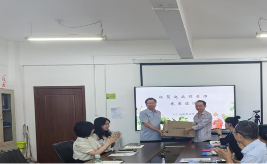 紧接着,人文学院党总支书记买中傲为赵老师送上了精心准备的纪念品,对赵老师的辛勤付出表达了感谢,赵老师也表示虽然离开了工作岗位,但他将永远铭记这段美好的时光,继续关注和支持学校的发展。