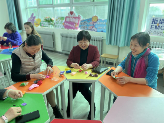 艺术疗愈环节中,王晶老师向大家介绍了萨提亚的沟通模式,为后续的艺术创作奠定理论基础。女教师们用五彩轻粘土塑造出形态各异的作品,如微笑的向日葵、奇特的杯子等。完成个人创作后,作品在小组内传递,每位老师在欣赏他人作品的同时进行添加、修改,最终作品变得更加丰富多元,如同大家在交流互动中收获的成长与感悟。小组推选优秀作品展示,创作者分享了作品背后的故事与寓意,让大家深入领略到每件作品承载的情感与思考。