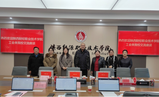 11月18日,陕西财经职业技术学院工会主席王爱军一行三人莅临我校进行交流座谈。交流座谈会在我校办公楼第二会议室举行。工会副主席李粒主持会议。