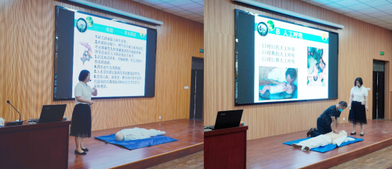 “严防溺水,争分夺秒抢救生命”。王亚妮老师以实例直观阐述日常生活中容易发生的溺水情况、溺水自救互救方法,现场进行了心肺复苏及溺水应急救护示范,手把手教授师生们溺水抢救、气道异物梗塞等现场急救方法和急救原则。