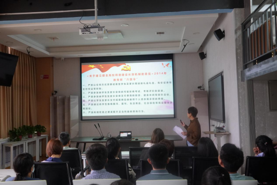 最后,由此引申到高校教师师德师风建设,共同学习了《关于建立健全高校师德建设长效机制的意见》2014年教育部“六禁令”、高教教师师德“红七条”以及新时代高校教师职业行为“十项准则”,要求我们广大高校教师要向“七一勋章”的获得者、高尚的教育行业奉献者张桂梅老师致敬,学习她为教育事业兢兢业业、无私奉献的执着精神!