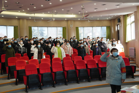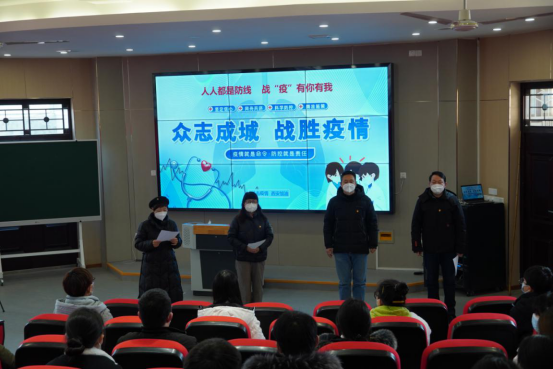 紧接着由陈小红领誓,全体志愿者共同宣誓“我自愿参加核酸检测志愿服务队,保证做到遵守纪律,听从指挥,热情服务,无私奉献,做好个人防护,严格操作流程,坚决完成任务。”铮铮誓言,回响在陕能院上空。