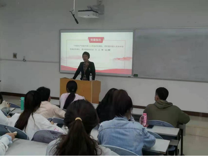 4月7日晚5:30,护理学院分别在西一、中二阶梯教室召开党课第一讲。护理学院党总支书记王瑜与同学们分享《中国共产党的性质和宗旨》,从中国共产党是中国工人阶级的先锋队,同时是中国人民和中华民族的先锋队;中国共产党是中国特色社会主义事业的领导核心;党必须始终做到“三个代表”;全心全意为人民服务是党的根本宗旨四个层面展开,指出党的性质在不同的历史时期具有不同的内涵。王书记要求入党积极分子们充分理解中国共产党的性质、宗旨,体会中国共产党的优越性,高标准严要求,崇尚真正的“英雄”,向党组织靠拢。