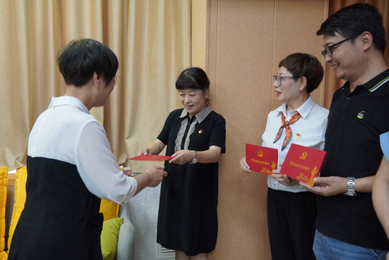 随后,护理学院党总支书记王瑜、护理学院党总支副书记仵卫民为下半年入党的党员同志们发放精心准备的党员政治生日纪念卡。