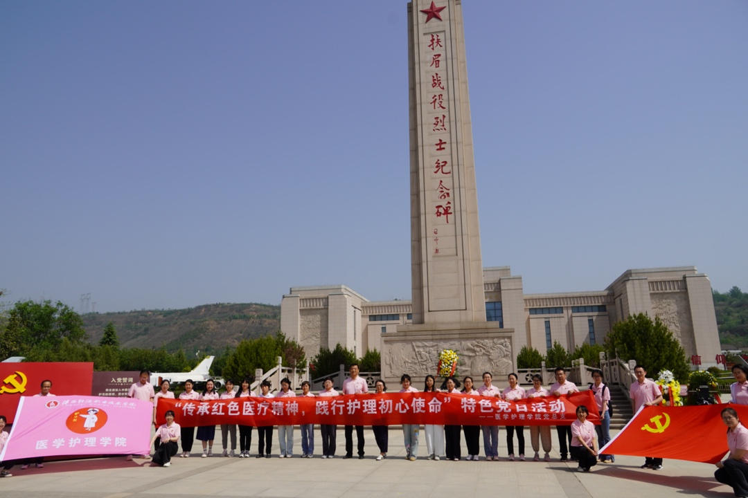 上午,在庄严肃穆的扶眉战役烈士纪念碑前,全体党员同志整齐列队,奏唱中华人民共和国国歌,向烈士敬献花篮,深切追思为革命事业英勇献身的先烈。面向鲜红党旗,全体党员重温入党誓词,在革命先烈的见证下重温铮铮誓言。在纪念馆内,大家在讲解员的带领下有序参观了烈士纪念馆,通过馆内陈列的珍贵文物和历史资料,大家共同追忆革命先烈浴血奋战的峥嵘岁月,参观结束后,医学护理学院党总支书记房朋为全体党员讲授“传承红色医疗精神,践行护理初心使命”专题党课。