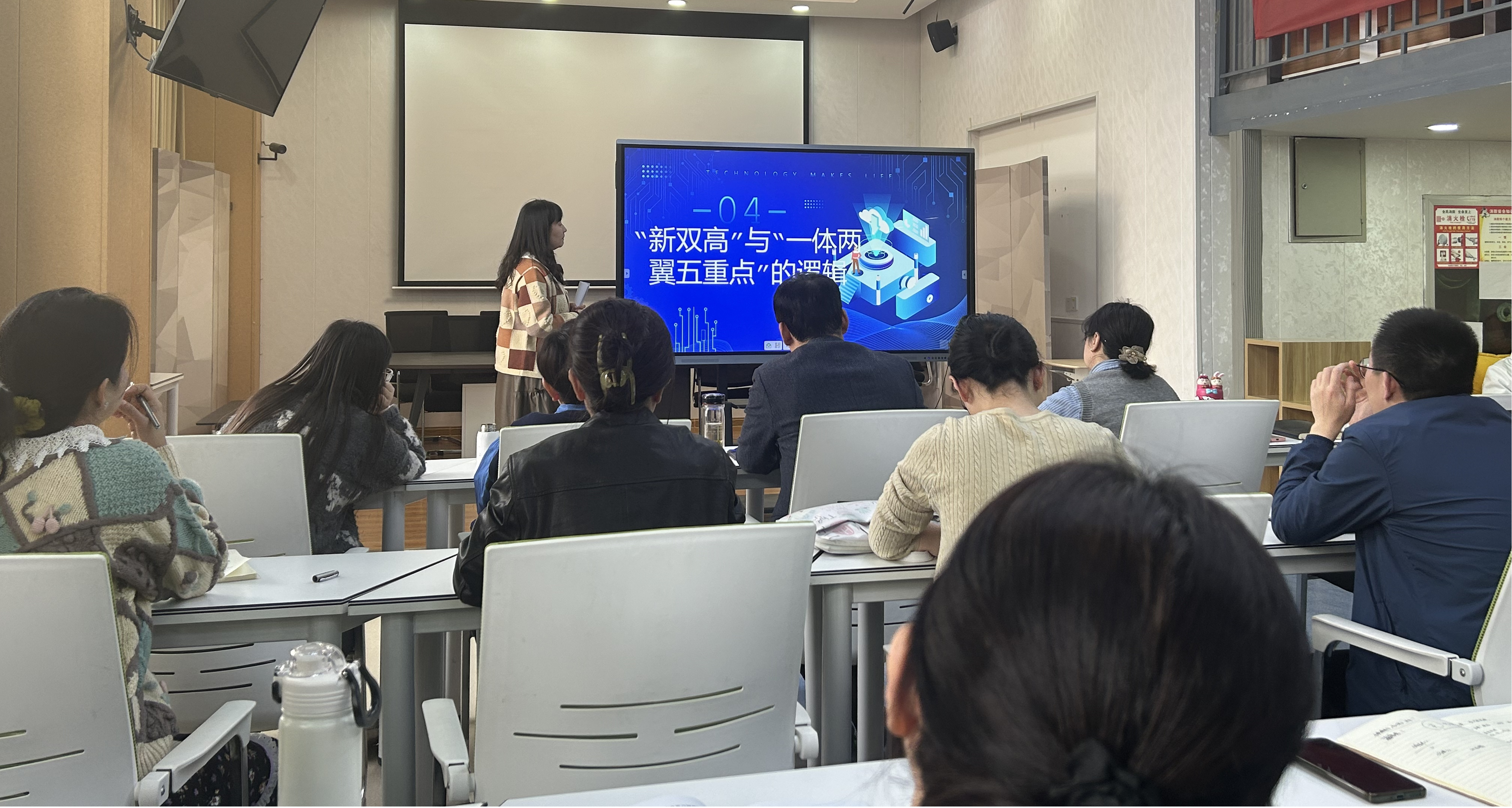 为深入贯彻落实职业教育改革精神,探索“双高计划”到“新双高”的发展路径,提升教师教学质量。医学护理学院于2025年3月26日,在临潼校区教师发展中心召开了解读职教政策专题学习讲座。本次讲座主题为《解码职业教育的“一二三四五”》,由医学护理学院副院长张扬主讲,全体教师参加。
