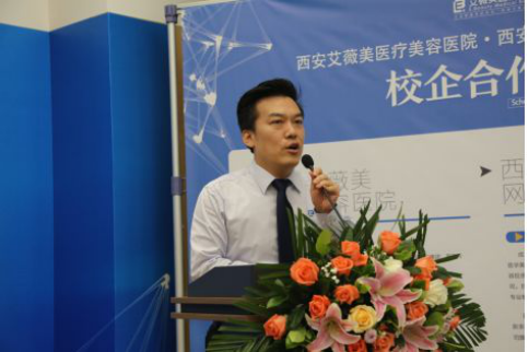 李耀辉副校长代表学校讲话,他指出,西安艾薇美医疗美容是国内第一个将医美整形与口腔、儿科、妇科、体检治疗融为一体的综合医疗平台,是美和健康管理平台,也是新型医学共享的平台。学校和西安艾薇美医疗美容合作,是响应国家加强校企合作的一项重要举措,是学院深入推进院校合作“互利双赢”的积极探索。本着互利双赢、优势互补的原则,共同努力协作培养既有扎实文化基础知识,又有与岗位能力要求相对接的高素质技术技能人才,培养出医院、企业、学校、家长、社会满意的医护人才。通过双方共同努力,必将在双方发展理念的创新、师资队伍建设、教学科研能力提高、校院资源共享、社会服务能力提升等方面取得丰硕的成果。