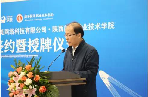西安新求美网络科技有限公司总经理赵小宁代表医院授予陕西能源职业技术学院为人才培养基地,陕西能源职业技术学院护理学院院长仵卫民接牌。