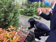 学工办主任陈小红带领大家在英雄墓前默哀并敬献鲜花,随后讲解了先烈英雄的事迹。纪念是为了传承,传承是为了发展。先辈用生命和热血创造了幸福的今天,我们要继承先烈遗志,弘扬先烈精神,传承红色基因,缅怀先烈事迹,学习先辈们对革命事业的忠诚,牢牢记住他们的英雄事迹。