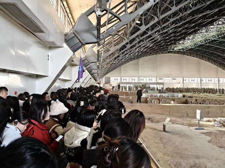 作为“世界第八大奇迹”,秦始皇兵马俑是中华文明的重要标识,也是中华民族智慧与创造力的生动体现。在专业讲解的引导下,同学们依次走进一、二、三号俑坑,近距离感受秦俑军阵的恢弘气势。同学们还现场观摩了考古人员的修复工作,深刻体会到文物保护工作的细致与艰辛。