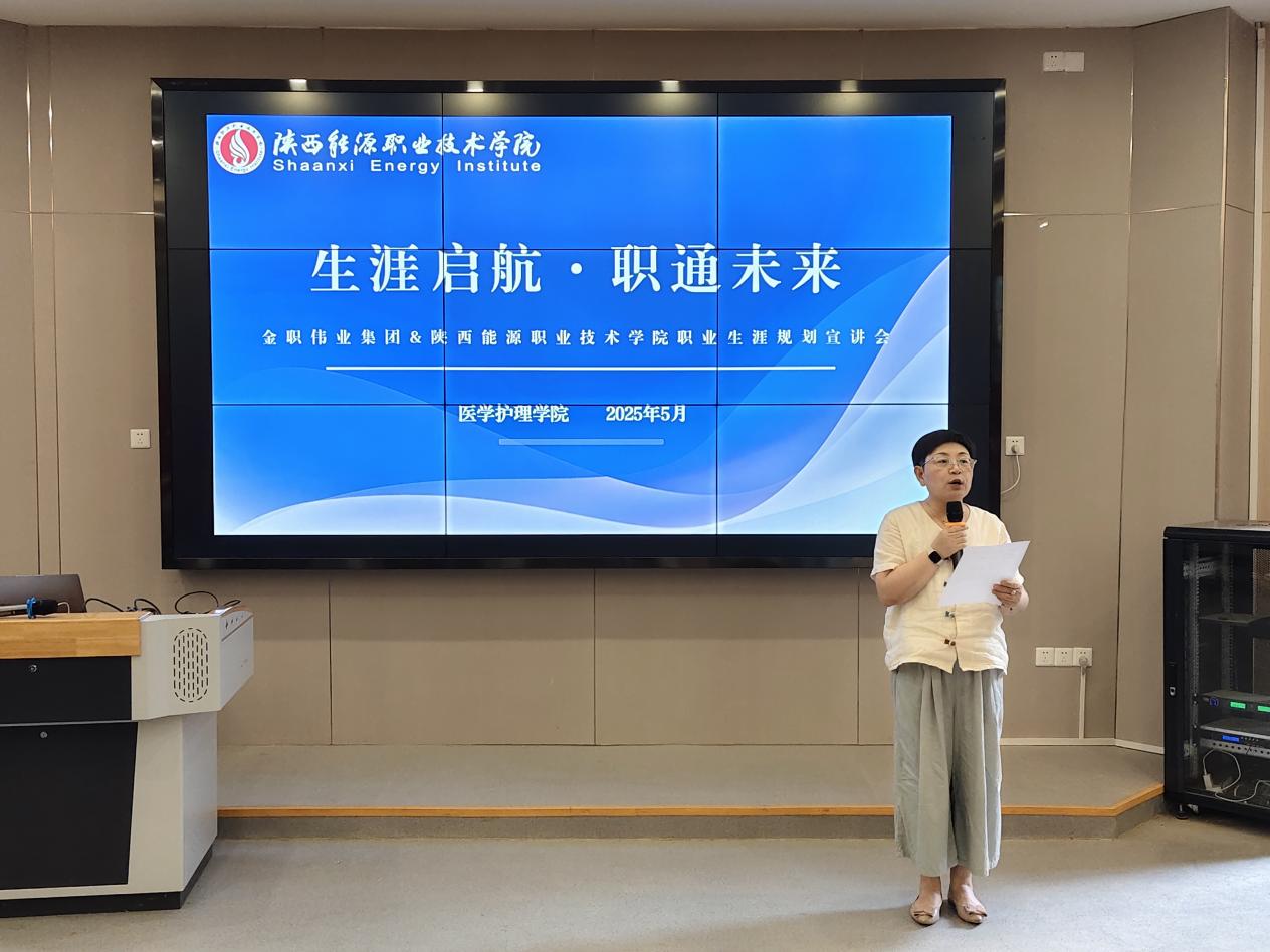 为深化产教融合,助力医学护理学院学子职业生涯规划能力提升,5月20日,金职伟业集团金岗就业中心总监周丹、就业经理闫文杰等一行走进陕西能源职业技术学院临潼校区,带来"逐梦青春·职启未来"职业生涯规划专题宣讲会。医学护理学院党总支副书记陈小红、辅导员张昭昕及200余名学生代表参会,共同探讨行业发展趋势与职业成长路径。