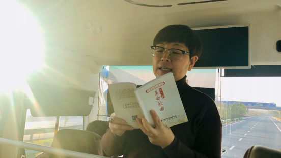 在途中,护理学院学工党支部书记陈小红老师带领大家重温经典革命歌曲,介绍《我的中国心》、《红梅赞》、《没有共产党就没有新中国》等革命歌曲的创作背景,并带领大家唱响革命歌曲,重温革命历史,一路上大家情绪高涨,气氛热烈。