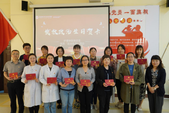 为此,护理学院党总支精心制作了“政治生日贺卡”,并由护理学院党总支副书记仵卫民、巩明发为17名上半年加入中国共产党的党员发放政治生日贺卡。
