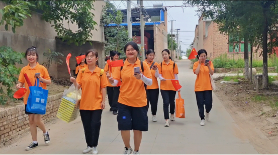 上午八点调研团在指导老师王瑞娟的带领下,高喊着“看民生,察民情,聚民心”的口号,前往临潼区赵刘村开展实践活动。一路颠簸,历时1个小时左右,调研团到达了村口,在村民的热心帮助下,乘坐三轮车进入村镇,大家高唱着《我们走在大路上》,昂首阔步开始社会实践,展现出了陕能院学子斗志昂扬,红心向党的精气神。