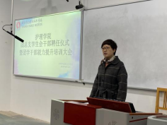 王瑜为团总支学生会聘任大会总结寄语,表达对所有新一届团学干部的祝贺,对上一届团学干部辛苦工作的感谢。随后,她为团学干部能力提升培训大会致辞,对团学干部提出了三方面的希望:从学院发展方面,希望学生干部必须与学院高度保持一致;从保障广大学生成长成才方面,希望全体学生干部要发挥火车头作用;从学生干部自身发展方面,希望学生干部加强政治理论学习,不断提高自身能力素质,树立良好的学生干部形象。学生干部应当把把本次培训作为新的起点站,树新风、展新貌,全心全意为广大同学服务。