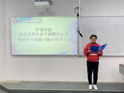 大会在集体高唱国歌中开始。陈小红老师宣读《护理学院团总支学生会2021-2022学年学生干部聘任决定》,全体辅导员为学生干部颁发聘书。