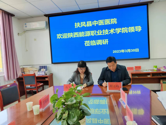 3月30日,在我校副校长刘浩的委托下,护理学院、医学技术学院党政负责人及相关教师一行10人赴扶风县中医医院进行实习就业、访企拓岗调研座谈。座谈会由扶风县中医医院党支部书记、院长程志峰主持,扶风县中医医院业务副院长杨文军、工会主席侯恩浩、综合办主任夏发军、护理部主任陈永会参加了此次座谈。