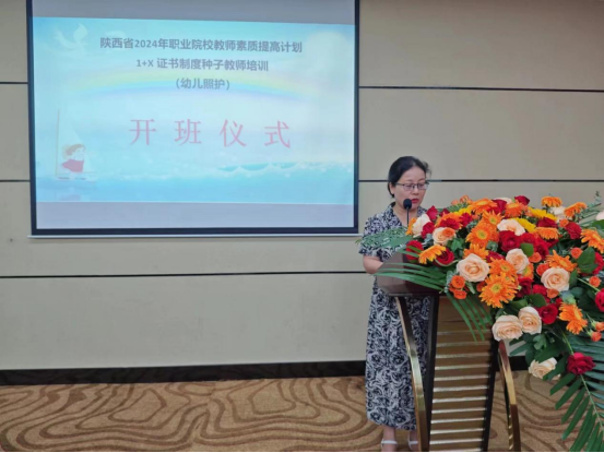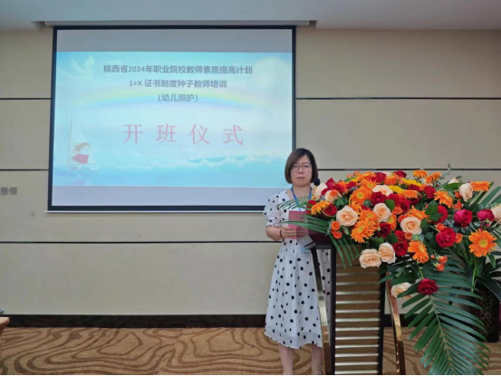 2024年7月1日,由陕西省教育厅主办,陕西能源职业技术学院和湖南金职伟业母婴护理有限公司共同承办的陕西省2024年职业院校教师素质提高计划1+X证书制度种子教师培训--幼儿照护国家级培训于上午8点30分在西安蜀汉印象大酒店会议厅正式开班。参加开班仪式的人员有陕西能源职业技术学院护理学院院长王瑜、护理学院副院长张扬、护理学院副教授申婧、助产教研室主任王冰及来自陕西省各高职院校的骨干教师,开班仪式由张扬主持。