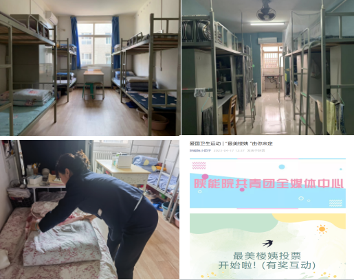 3月1日-4月20日,后勤保障处开展“内务大比武”优秀宿舍评比、“最美楼姨”评选等活动。此项活动的开展教育引导广大学生热爱校园、热爱生活,提升学生健康素养。