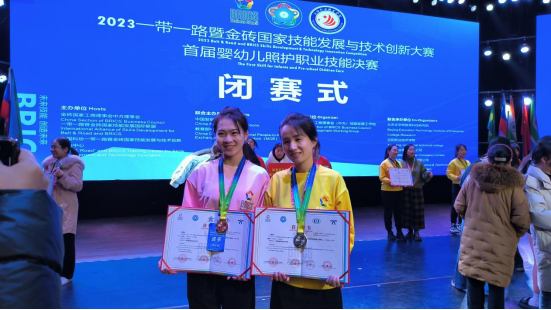 12月14日至18日,2023一带一路暨金砖国家技能发展与技术创新大赛首届婴幼儿照护职业技能决赛在湖南岳阳职业技术学院举行。护理学院教师马雪雪、助产2201班学生郭隽茹作为参赛选手参加总决赛。