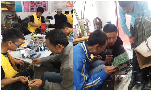 为增强大学生实践能力、社会服务能力和社会责任感,紧紧围绕“学以致用、厚德育人和服务社会”的育人理念,4月28日下午,电子工程系(双创部、志愿者工作部)和咸阳银凤爱心服务中心联合举办“家电维修”社区公益行活动,系部特邀骞军寿老师做技术指导,双创部、志愿者工作部同学在老师的带领下来到十一公司小区和华电小区,为社区居民义务维修。