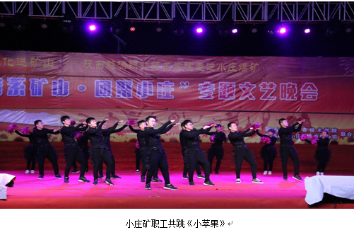 晚上七点整,晚会在热闹欢腾的《欢天喜地》歌舞中正式拉开帷幕。团委陈杰老师深情演唱的一首《呼伦贝尔大草原》,浑厚辽阔的嗓音、从容稳健的台风,立即将晚会热烈的气氛点燃。小庄矿职工编排的舞蹈《小苹果》旋律优美、动感十足;《川剧变脸》展示陕能院学子多才多艺以及对传统文化的弘扬;陕能学子朗诵的《最美矿工》,表达了对可爱可敬的矿工的敬重,歌颂了煤矿职工们为了努力建设美丽矿山,扎根基层、无私奉献的优秀品质,和为了祖国的煤炭事业,奋力开拓、艰苦奋斗的顽强精神;小庄矿职工表演的小品《家风轶事—考女婿》,用精彩的演技表达了权不私用、坚守原则的工作作风;小庄矿选送的女生独唱《芦花》,唱功深厚、惊艳四座;陕能学子们,用优美的舞姿、青春的朝气活跃在舞蹈上。陕能院至今已有六十四年的办学历史,有着深厚的校园文化精神,培养了一批又一批技术人才。他们有着学煤、爱煤、以煤为友的煤炭境界,他们本着不畏艰苦,拼搏奋斗的精神,为我国的煤炭事业做出了巨大的贡献。陕能学子共舞《矿工之歌》,将晚会推向高潮,并完美落幕。