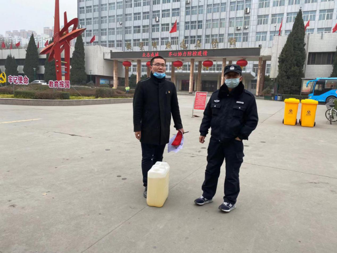 最后,王靖就如何加强我校和街道办对接工作做好安排,对我校近期防疫工作给予肯定,希望我校继续保持积极认真的防疫工作,认真储备学生进校后的防疫物资,做好隔离室的建设工作,并向我校捐赠消毒水十公斤。