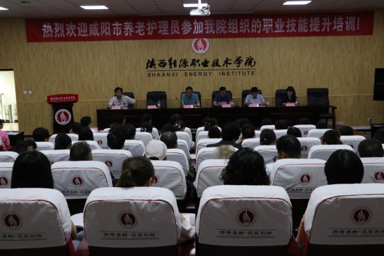 副校长赵新法致欢迎辞。指出,陕西能源职业技术学院咸阳市养老护理员职业能力提升培训班经过紧张筹备,终于如期举行,感谢各级领导对咸阳市养老护理员培训和我校继续教育工作的鼎力支持。陕西能源职业技术学院被评为陕西省养老护理员培训基地之一,既体现了陕西省对我校办学水平特别是护理、医学类专业教育教学水平的充分肯定,也体现了对我校承办省级养老护理员培训工作能力的充分信任。他强调,此次咸阳市养老护理员职业能力提升培训,将以“仁德、求实、慎思、笃行”为主题,理论讲授与实操培训相结合,采取专家讲座、实操演练分享、案例分析、养老院实践教学、小组讨论等形式开展精细化培训。他希望培训教师和学员在培训期间,严格执行民政厅和培训单位的要求,遵守培训纪律,认真学习,保证培训质量。