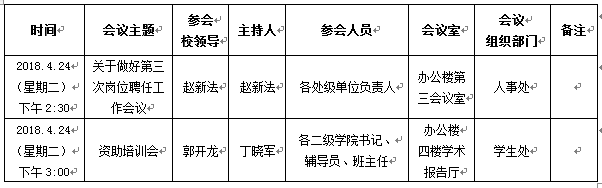 2018年4月23日至4月28日(第8周)会议安排预通知