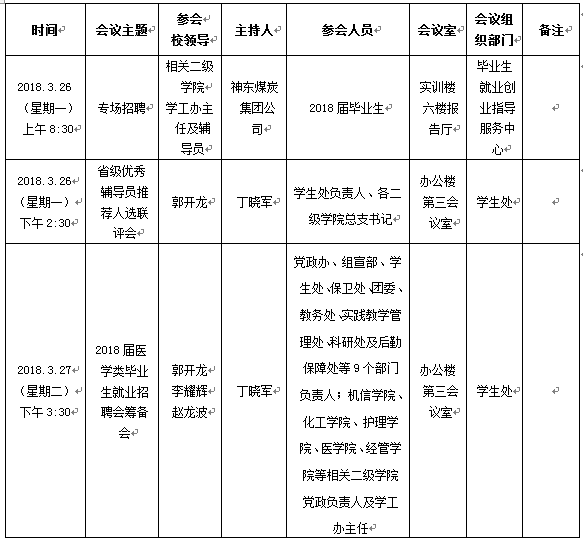 2018年3月26日至3月30日(第4周)会议安排预通知