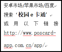 1、新一卡通系统采用电子虚拟卡,请广大师生通过安卓市场、苹果市场或百度搜索下载‘校园e卡通’APP,并绑定个人一卡通信息;