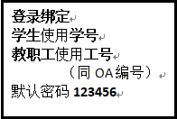 2、‘校园e卡通’APP绑定采用账号+密码的方式,账号学生为学号、教师为工号(同OA编号),默认密码为123456,首次登录需修改默认密码并输入身份证号进行身份验证(身份证号末尾字母大写)。