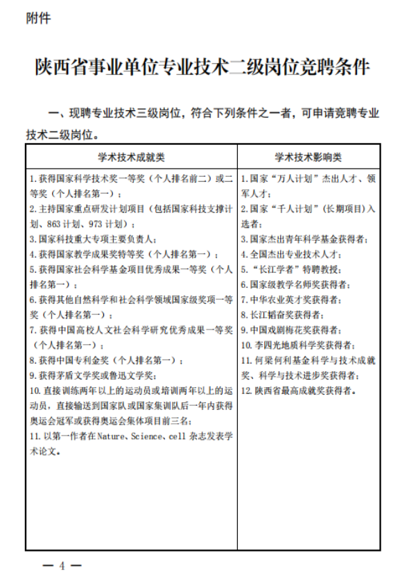 附件:陕西省事业单位专业技术二级岗位竞聘条件