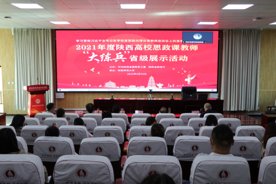 4月26日,由陕西省委教育工委、陕西省教育厅主办,陕西师范大学承办的陕西高校思政课教师“大练兵”省级现场展示活动采用线上线下相结合的方式在陕西师范大学举办。我校校领导、相关部门负责人、思政课教师、部分专业课教师以及学生代表约200余人在咸阳校区文林大讲堂和临潼校区教师沙龙室全程观摩了这堂“云端”思政大课。